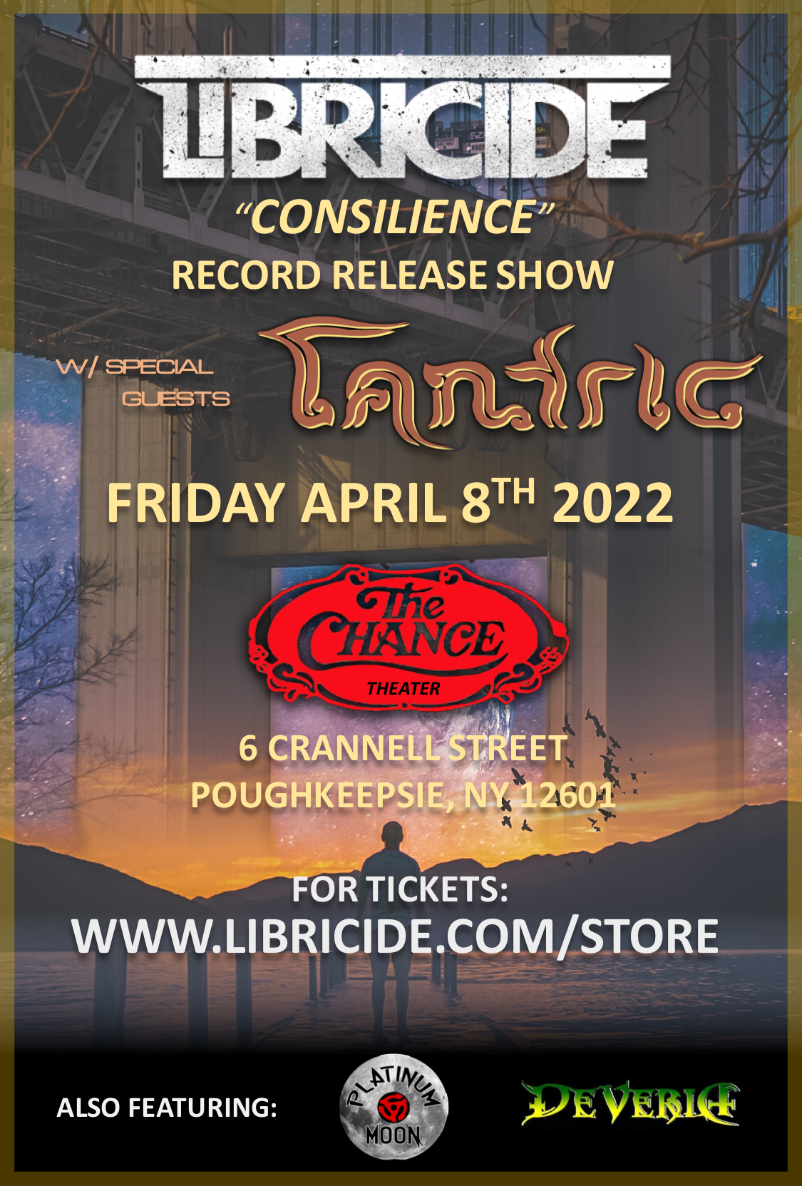 LIBRICIDE will be performing at their record release party Friday, April 8th- the same date their new album Consilience releases worldwide. It all takes place at the historic Chance Theater in Poughkeepsie, NY with very special guests, post-grunge icons Tantric!